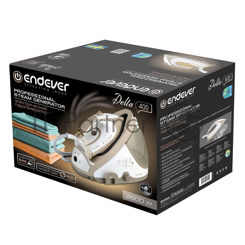 Парогенератор электрический ENDEVER Delta-400, белый/бежевый, мощность 2600 Вт, пост. подача пара 140 г/мин, макс. паровой удар до 400 г/мин, 1 шт/уп