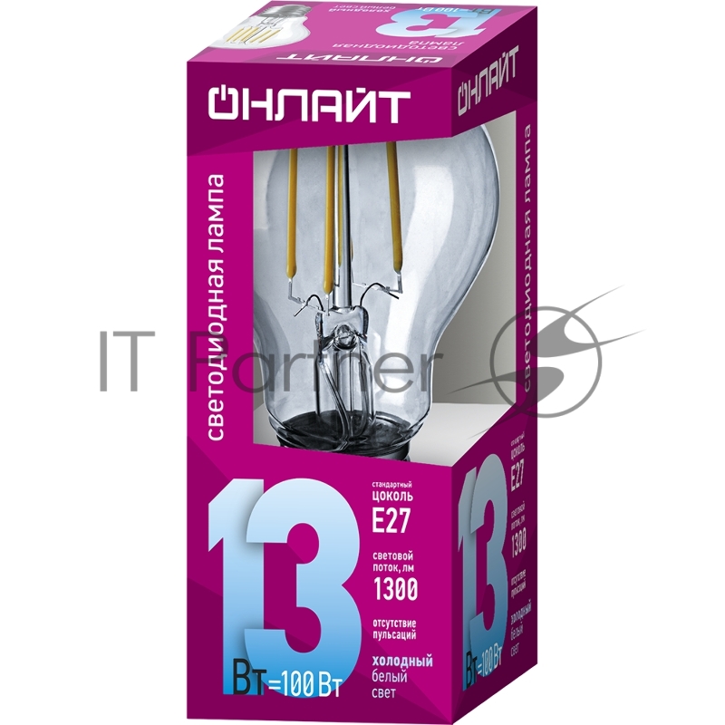 Лампа светодиодная ОНЛАЙТ 80 877 OLL-F-A60-13-230-4K-E27 80877