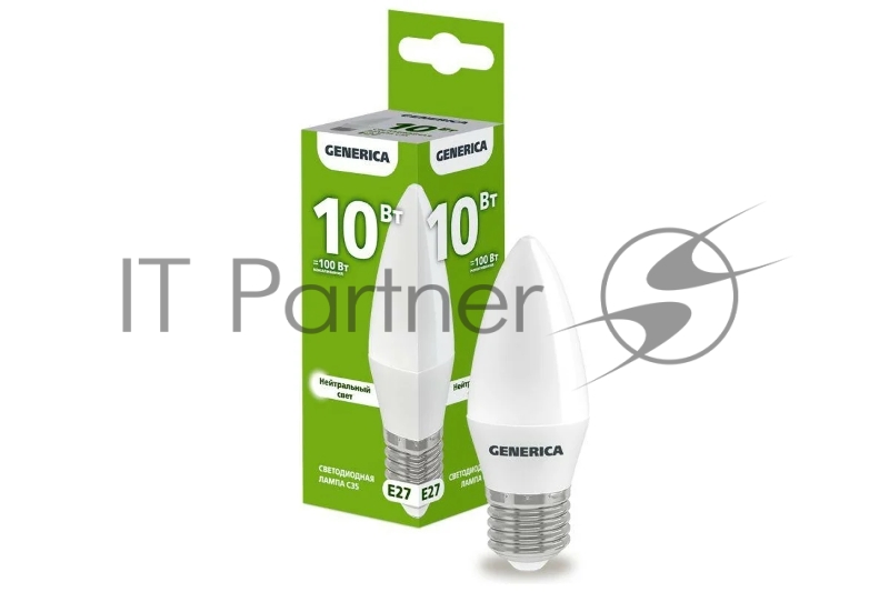 Лампа светодиодная C35 10Вт свеча 4000К E27 230В GENERICA LL-C35-10-230-40-E27-G