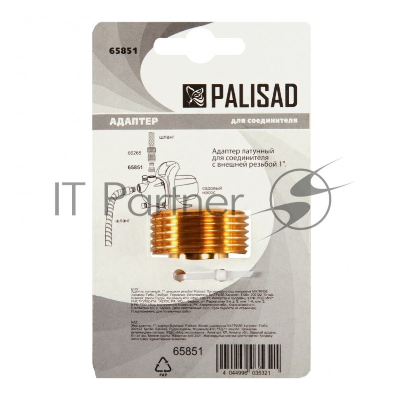 Адаптер латунный, 1, внешняя резьба// Palisad