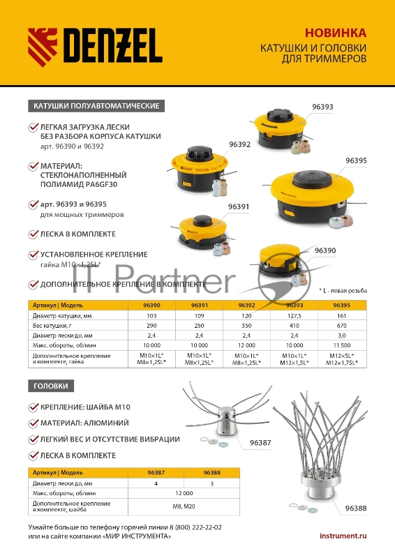 Катушка тримм. полуавтомат. легкая заправка, гайка М10х1,25L гайка М10х1L гайка М8х1,25L// Denzel