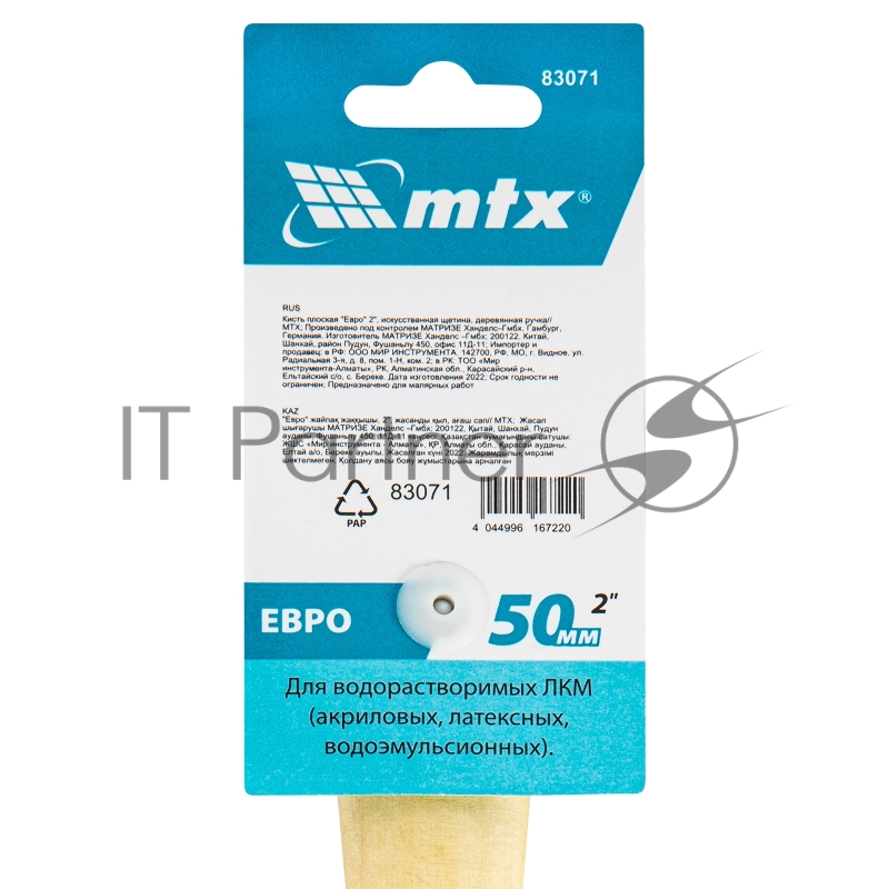 Кисть плоская Евро 2, искусственная щетина, деревянная ручка// MTX