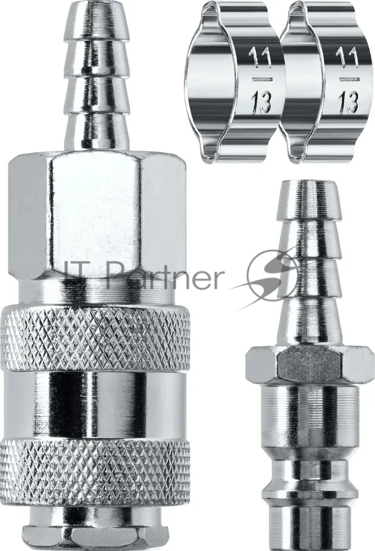Набор (штуцер елочка 8 мм - рапид муфта) + (рапид штуцер-штуцер елочка 8 мм) + (обжимные хомуты 2 шт) KRAFTOOL