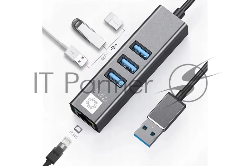 Кабель-адаптер USB3.0 5bites UA3-45-11BK / 3*USB3.0 / RJ45 1G / AL / GREY