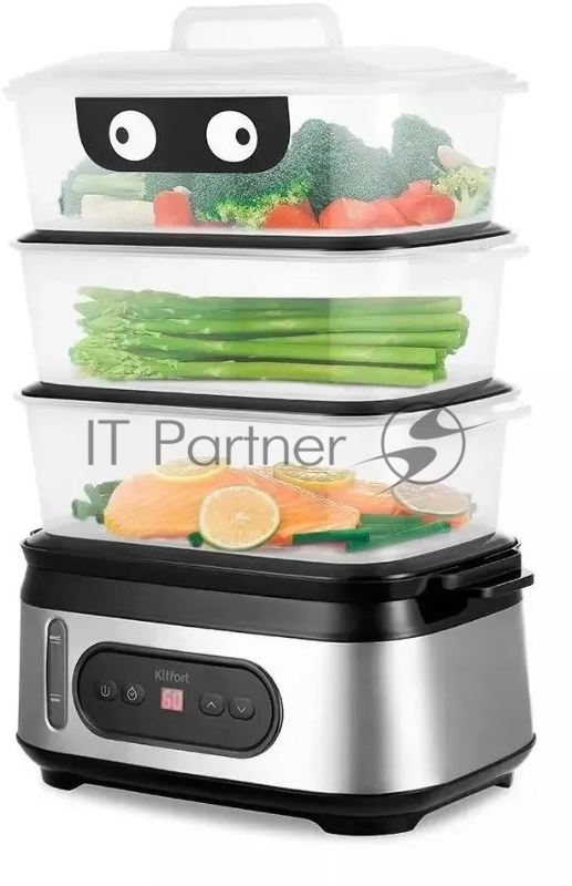 Пароварка Kitfort КТ-4082 3ярус. 800Вт серебристый