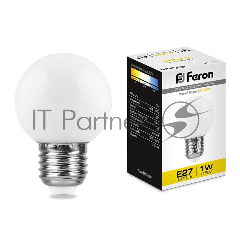 Лампа светодиодная LED 1вт Е27 белый 2700К (шар)