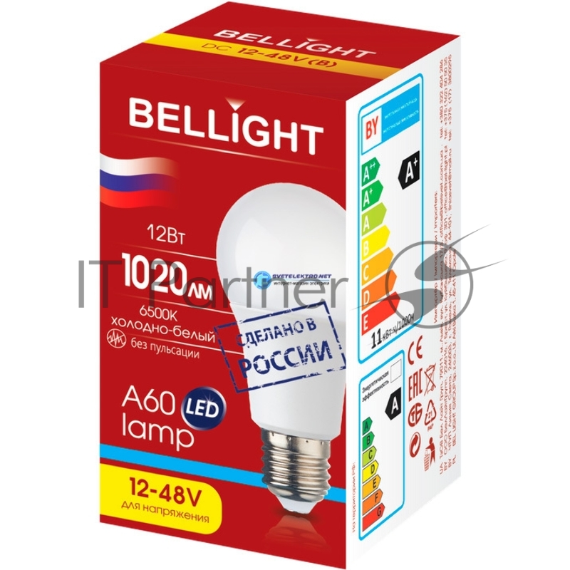 Лампа светодиодная LED A60 Е27 12W 12-48вольт 6500К Bellight