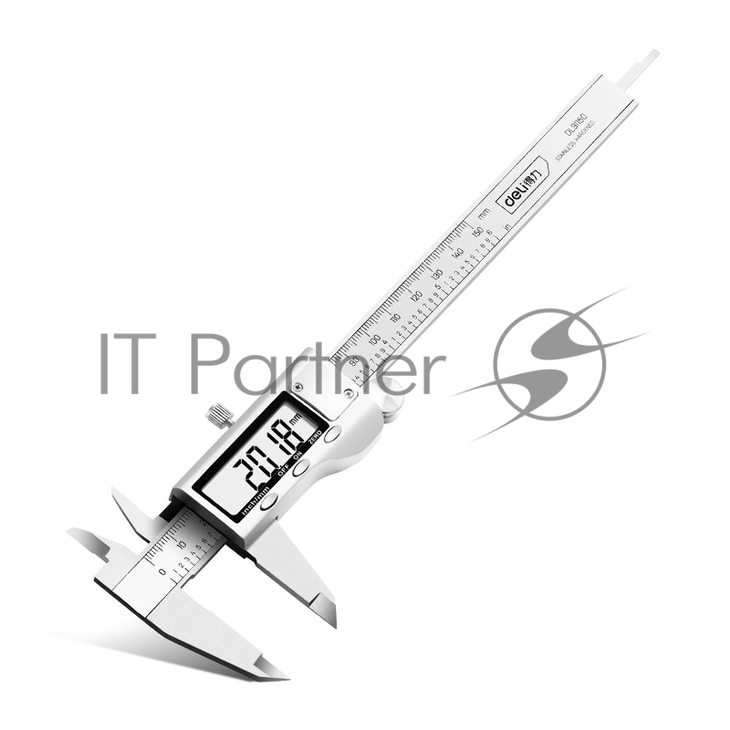 Электронный штангенциркуль Deli DL91150 150мм, метрическая/дюймовая конвертация, нержавеющая сталь, 3 кнопочное управление, светодиодный дисплей, 1,5В SR44.