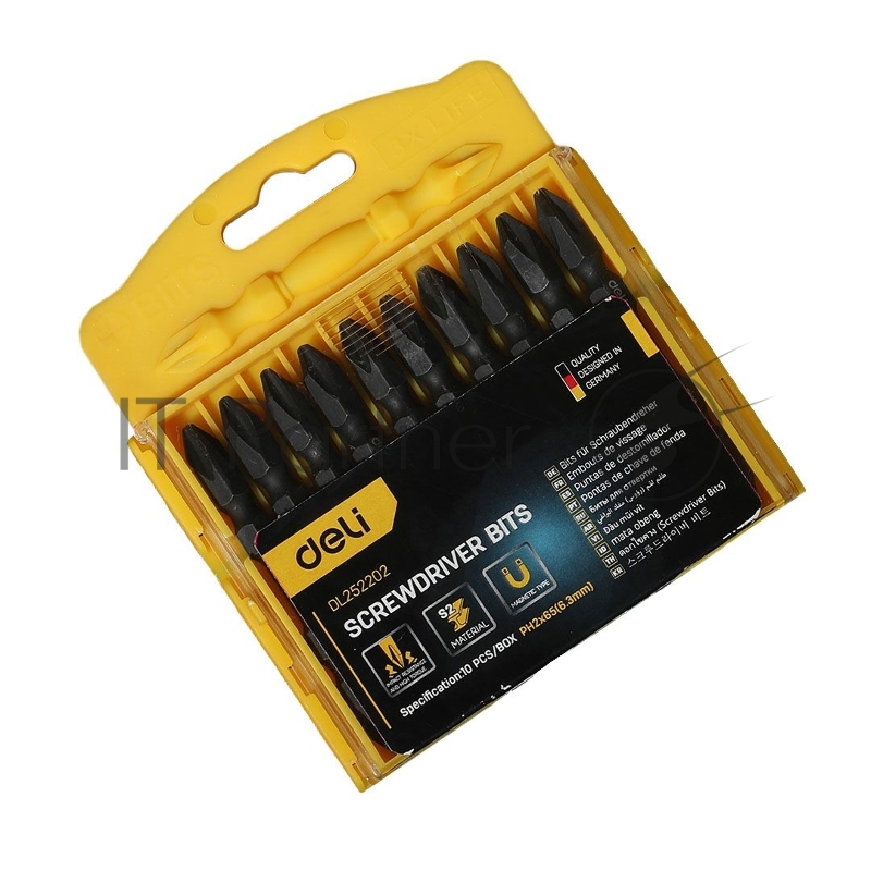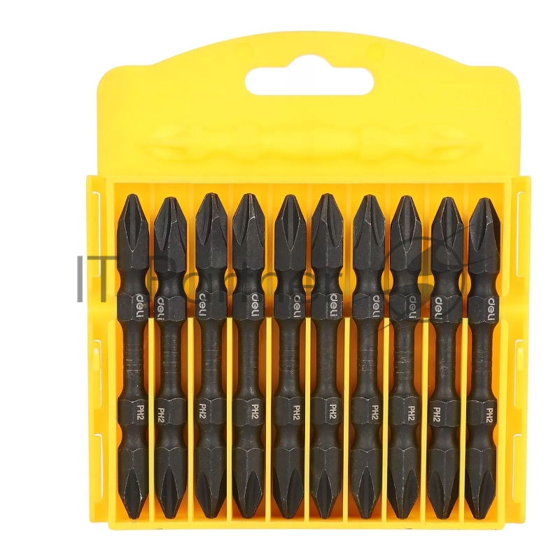 Набор двухсторонних торсионных бит для ударных шуруповертов 10 шт Deli DL252202 PH2*65мм, сталь S2, пласт.кейс
