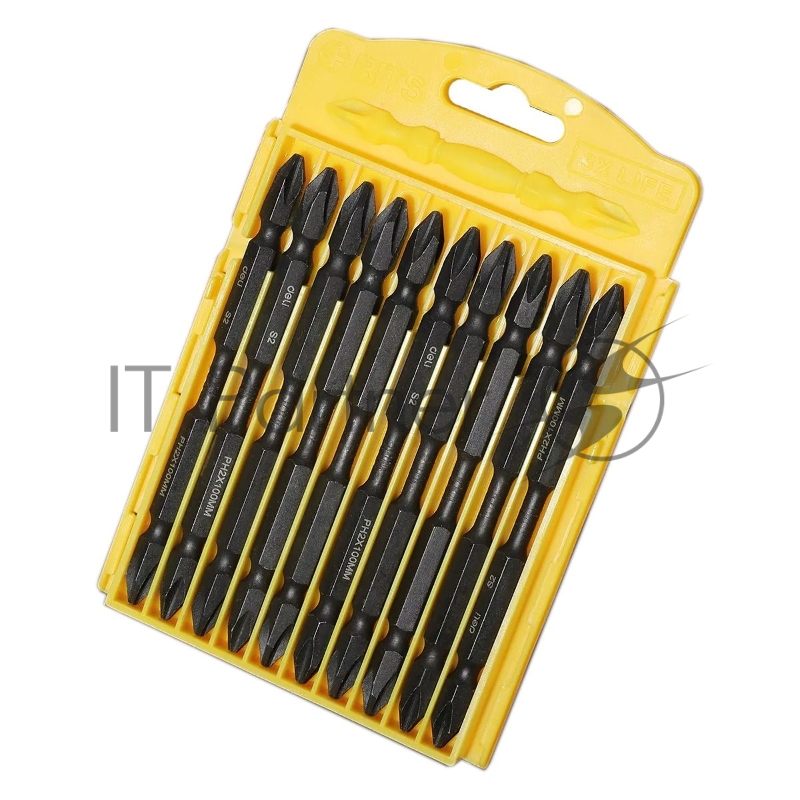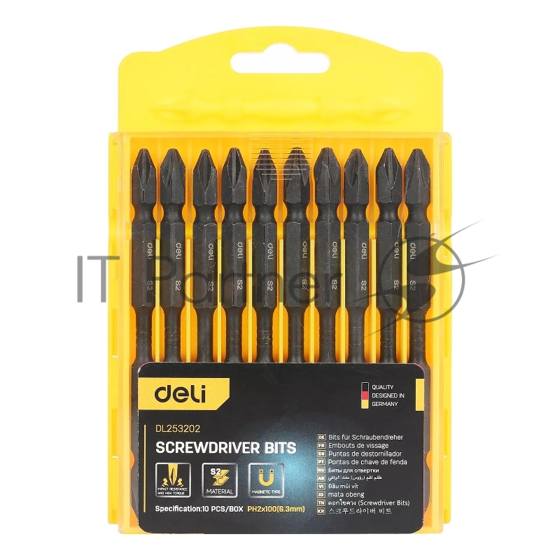 Набор двухсторонних торсионных бит для ударных шуруповертов 10 шт Deli DL253202 PH2*100мм, сталь S2, пласт.кейс
