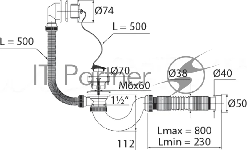Сифон МИНИ ЭЛИТ для ванн с гофротрубой, пластиковые чашки D40/50