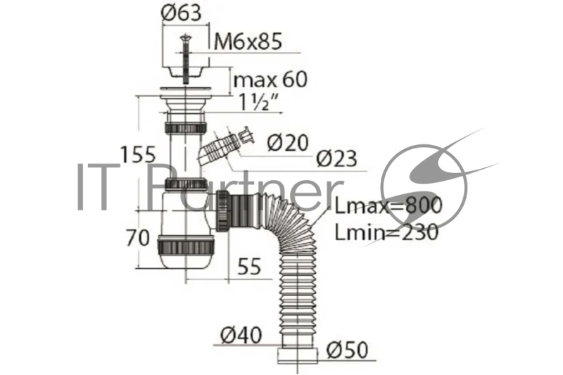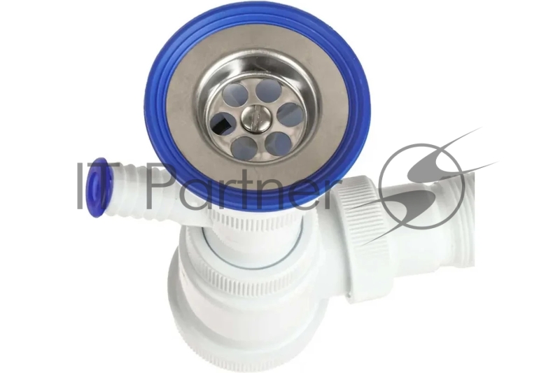 Сифон МИНИ ЭЛИТ для раковин 11/2 х 40/50 мм с нержавеющей чашкой 63 мм с отводом для стиральной или посудомоечной машины и c гофротрубой L800 мм