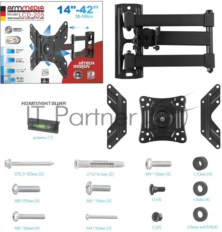 Кронштейн для телевизора Arm Media LCD-205 черный 14-42 макс.25кг настенный поворот и наклон
