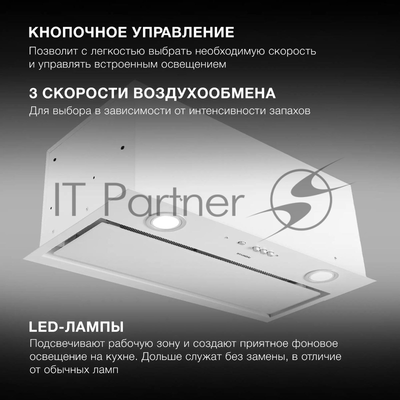 Вытяжка встраиваемая Hyundai HBB 6036 WG белый управление: кнопочное (1 мотор)