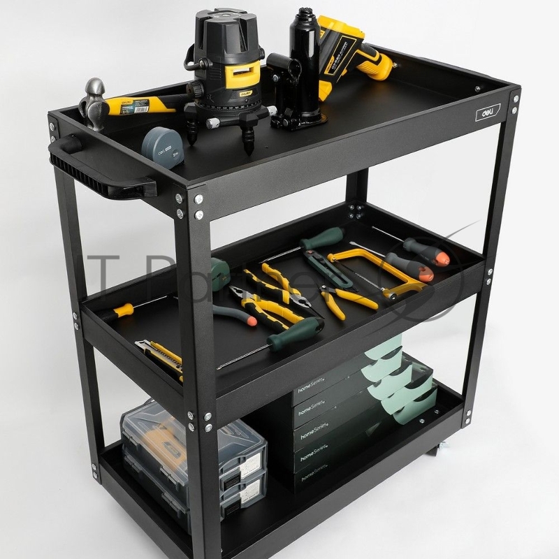Тележка инструментальная трехсекционная на колесах Deli DL433023 700x350x760мм, до 210кг, толщина полки 0,7мм, толщина стойки 1,2мм