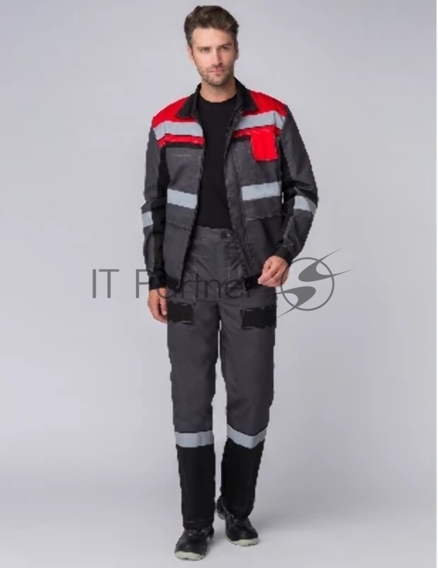 Костюм Виват-1 Премиум (ткань Смесовая,240) брюки, серый черный красный, 52-54 170-176