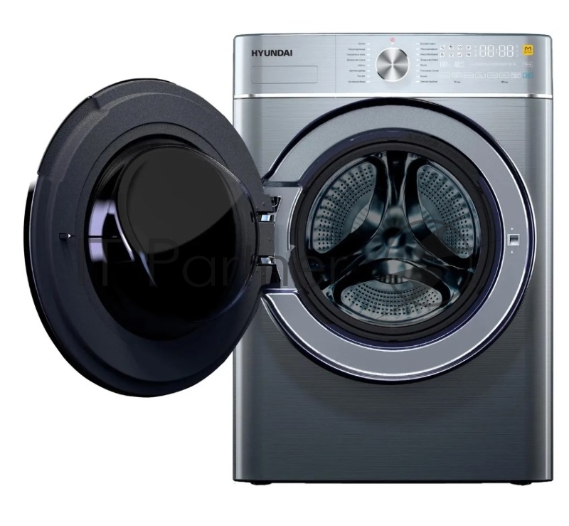 Стиральная машина Hyundai WMD9413 с функцией пара, класс: B загр.фронтальная макс.:10кг (с сушкой) темно-серебристый