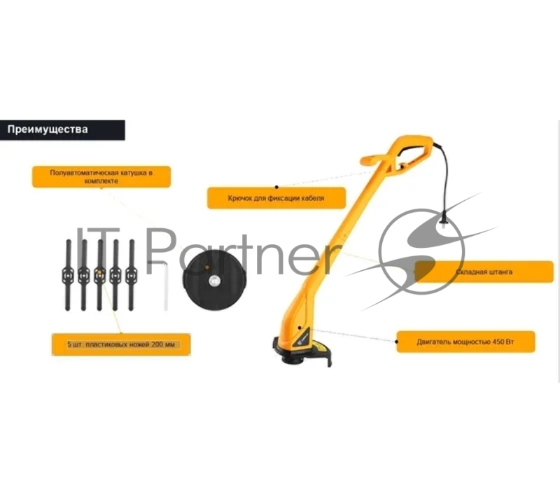 Триммер электрический Deko DKTR450 450Вт разбор.штан. реж.эл.:леска упак.:1шт.