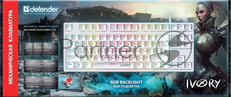 [Клавиатура] Defender Механическая клавиатура Ivory GK-579 RU, 87кн,1.5м,крас.свитчи, RGB [45579]