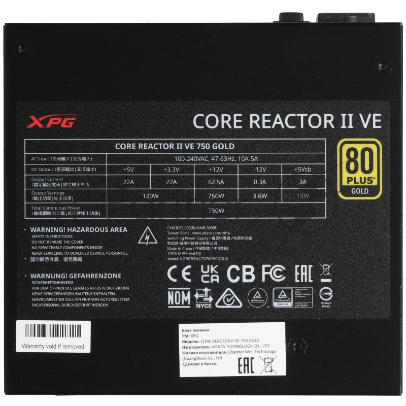 Купить Блок питания XPG COREREACTORIIVE750G-BKCEU в Коврове. Забрать в магазине "Ваш Компьютер" г.Ковров пр-т Ленина 20
