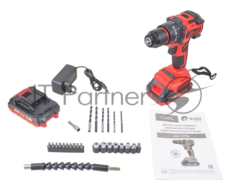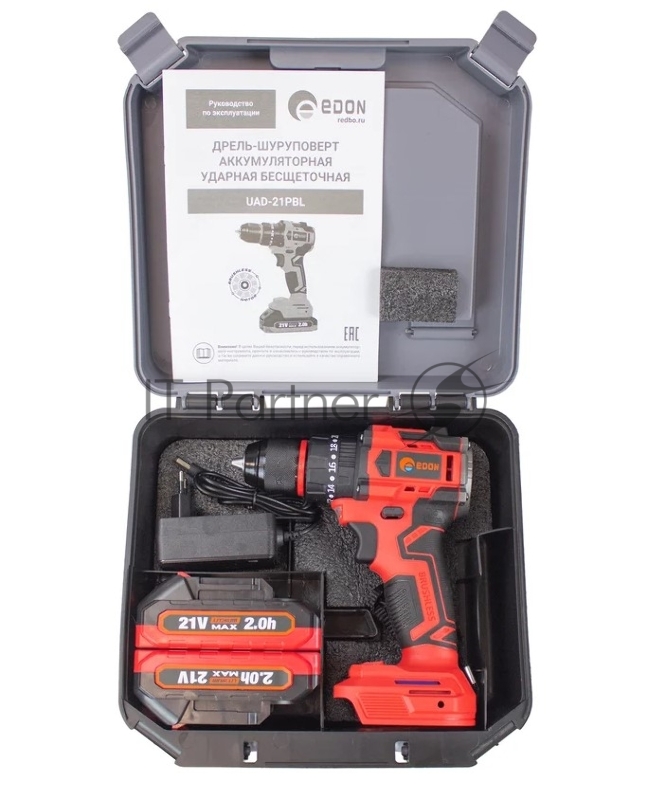 Дрель-шуруповерт аккумуляторная ударная EDON UAD-21PBL (2 АКБ*2Ач+ЗУ, 21В, 40Нм, кейс)
