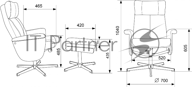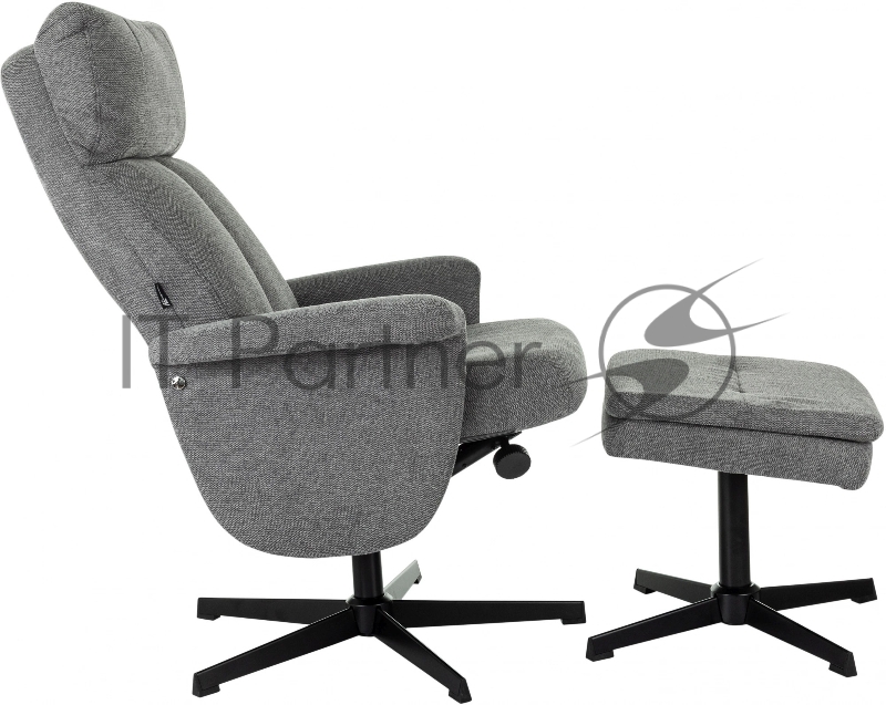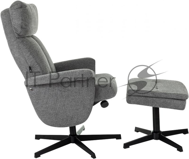 Кресло для дома Бюрократ _Baron с пуфом серый металл черный крестов. (_BARON/GREY)
