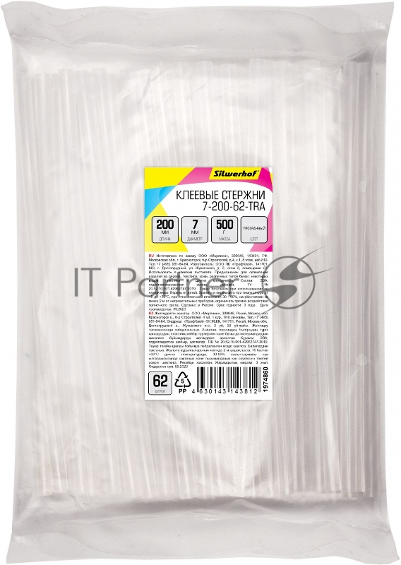 Клеевые стержни Silwerhof 7-200-62-TRA дл.200мм D7мм прозрачный упак:62шт