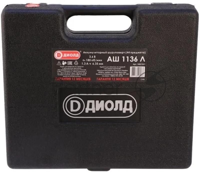 Отвертка аккум. Диолд АШ-1136 Л аккум. патрон:Шестигранник 6.35 мм (1/4) (кейс в комплекте) (10021021)