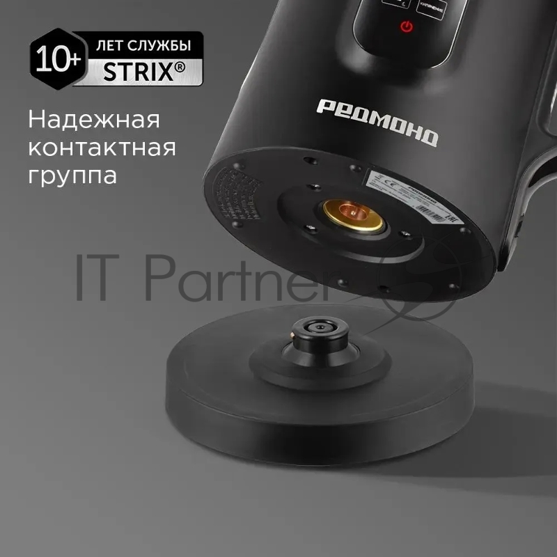 Чайник электрический Redmond KG225 1.5л. 2200Вт черный корпус: стекло