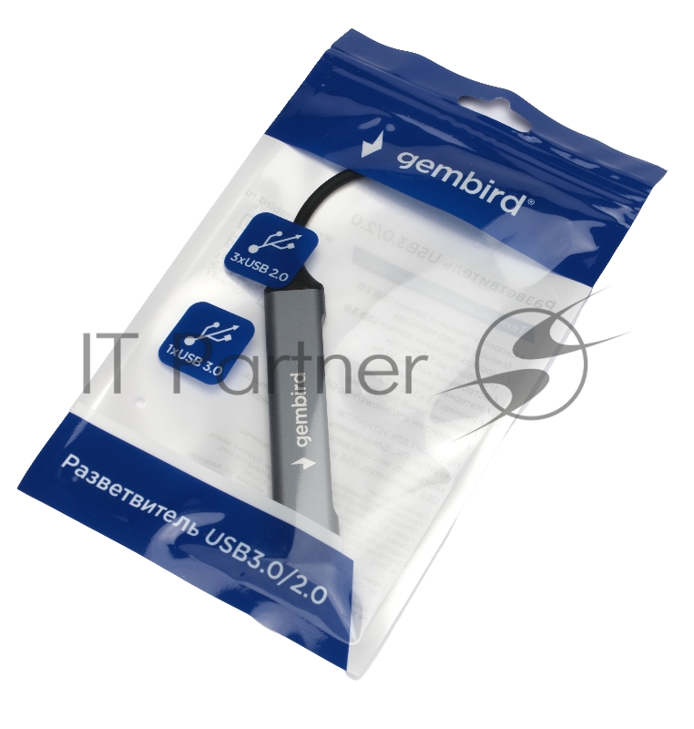 Разветвитель USB3.0/2.0 Gembird UHB-C202, USB3.0, 3xUSB2.0, кабель Type-C 10см, алюминий, пакет