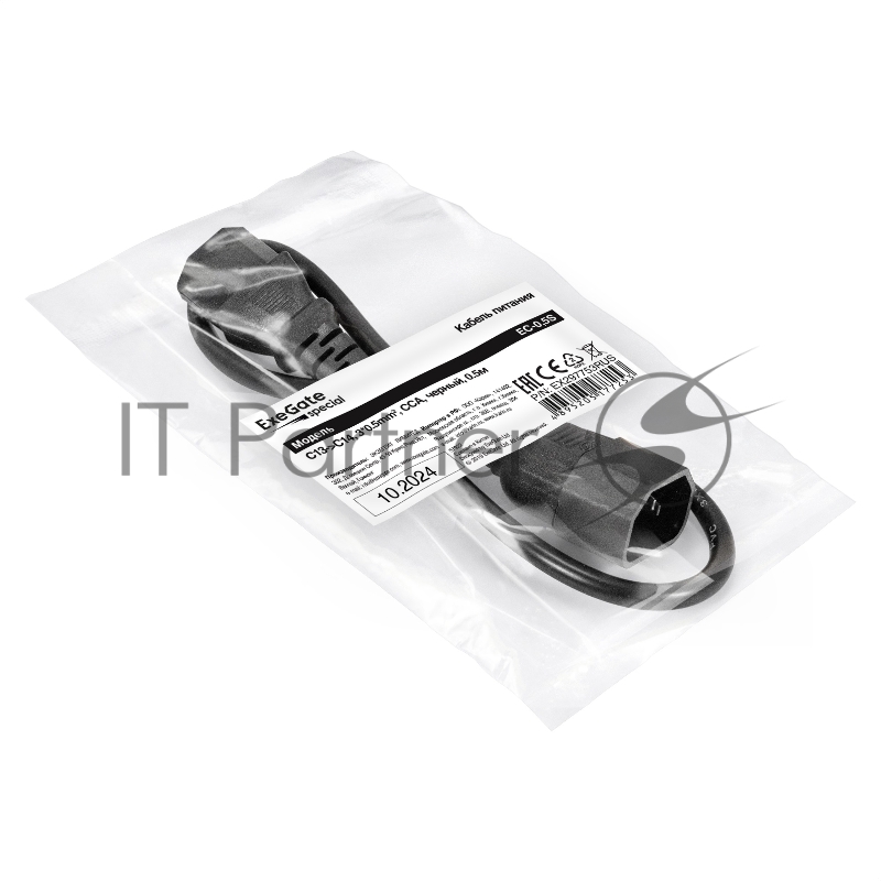 Кабель питания ExeGate Special EC-0,5S (C13->C14, 3*0.5mm2, CCA, черный, 0.5м)