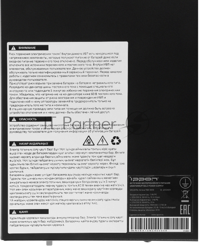 Источник бесперебойного питания Ippon Innova TBE 3000 2700Вт 3000ВА черный