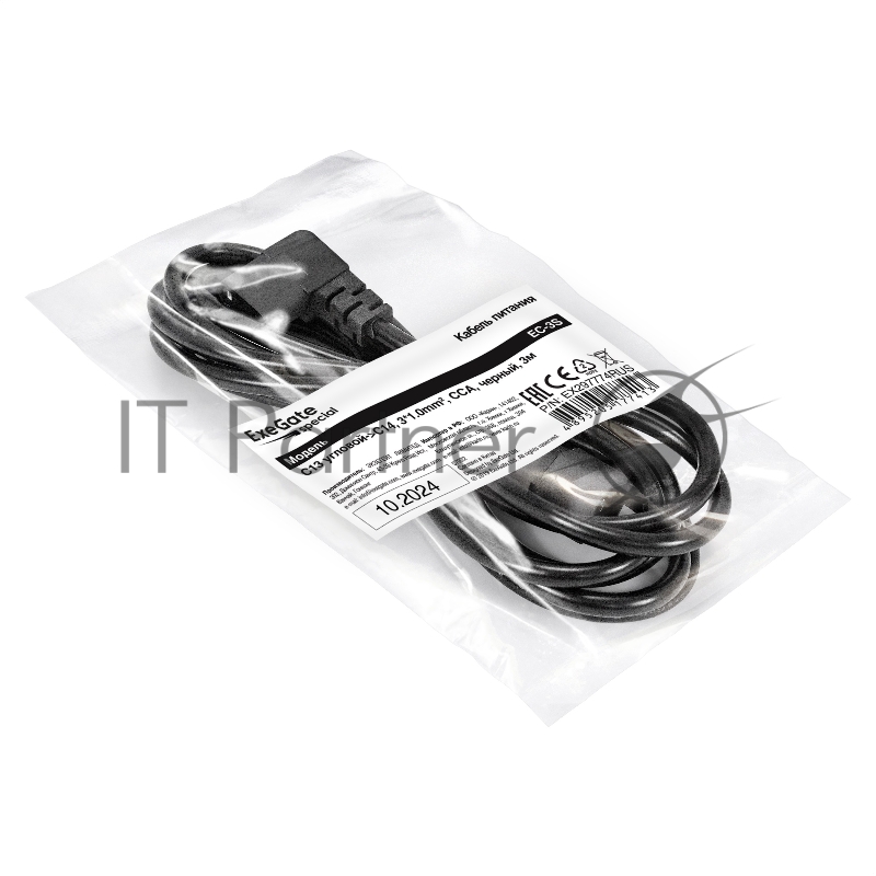 Кабель питания ExeGate Special EC-3S (C13 угловой->C14, 3*1.0mm2, CCA, черный, 3м)
