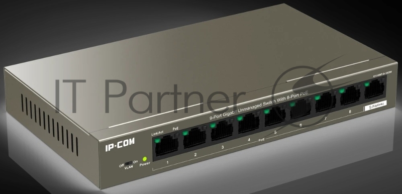 Коммутатор неуправляемый PoE IP-COM G1109P-8-102W 9 портов, 9x1 Гбит/с, PoE 8х92 Вт, настольный