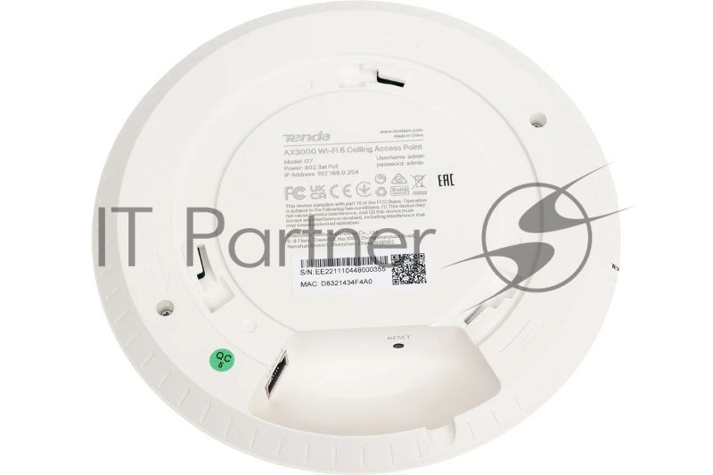 Двухдиапазонная гигабитная точка доступа Tenda i27 AX3000, 2,4/5 ГГц, до 2976 Мбит/с, антенны 2x4дБи, PoE, 1x1 Гбит/с