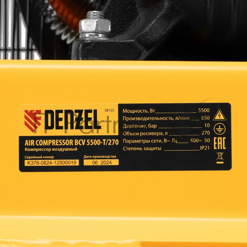 Компрессор воздушный рем. привод BCV 5500-T/270, 5,5 кВт, 270 литров, 850 л/мин Denzel