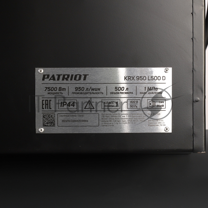 Компрессор PATRIOT KRX 950 L500 D, поршневой, ременной, масляный, 950 л/мин, 500 л, 10 бар, 5.5 кВт, 400 В