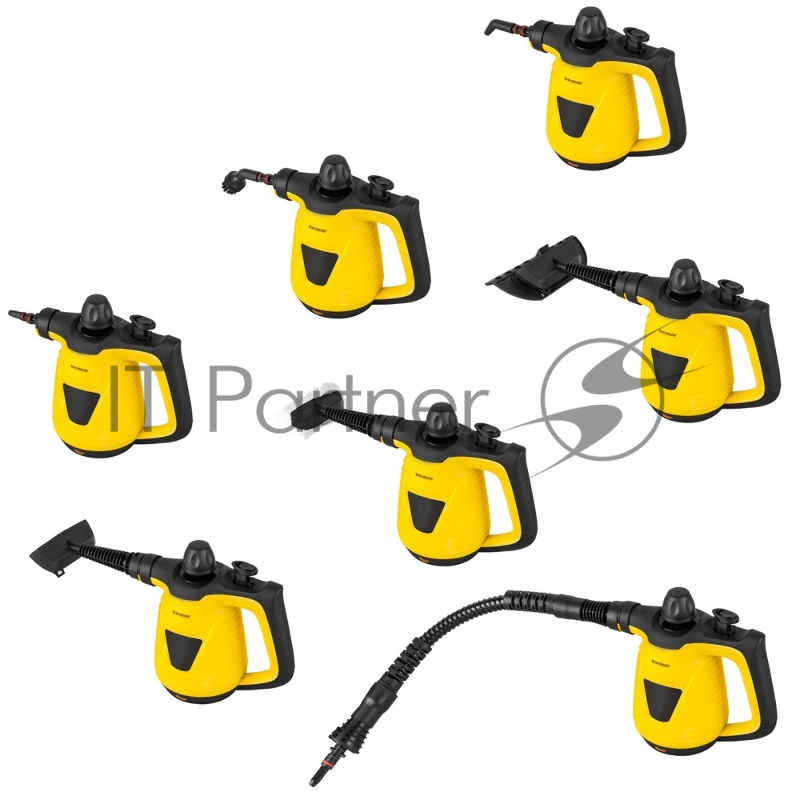 Универсальный ручной отпариватель-пароочиститель Endever Odyssey Q-464, желтый/черный, мощность 1100 Вт, давление 3,5 бар,производ. 35 г/мин, 6 шт/уп