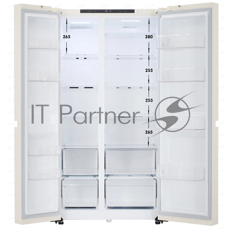 Холодильник LG GC-B257KEHW бежевый двухкамерный 422/206 л., морозилка слева, No Frost, Side by Side