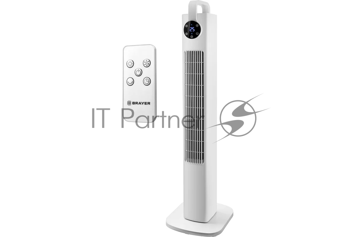 Колонный вентилятор BRAYER BR4957, эл..упр.,пульт ДУ,вращение,мощ-ть60Вт, LED дисплей, 3 скор.Таймер