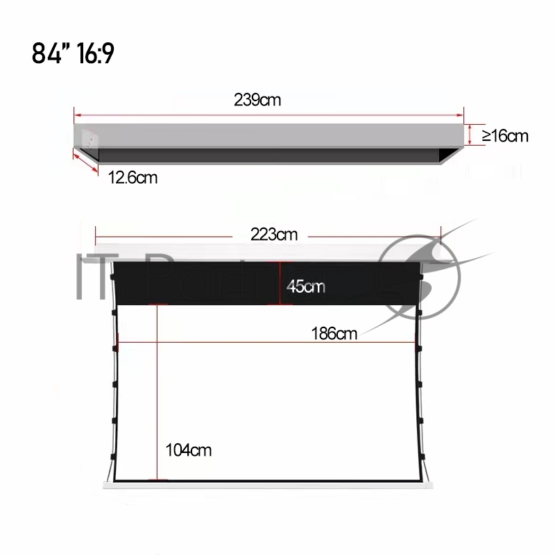 Экран для проектора SOK SCPSMC-186X105ED45GF для встраивания в потолок моторизованный 84 с боковым натяжением, полотно Grey Fiberglass, экстрадроп 45см