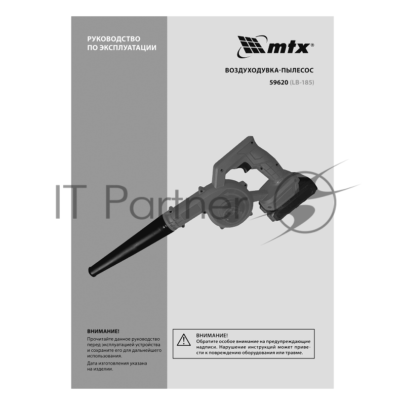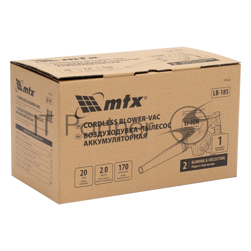 Воздуходувка-пылесос акк. портативная, LB-185, 35 м/с, 170 м3/ч, Li-Ion, 20 В MTX