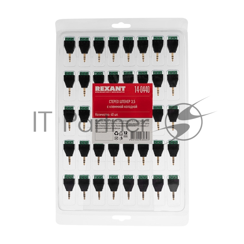 Штекер стерео 3,5 мм с клеммой колодкой под винт, (уп. блистер 40 шт) REXANT