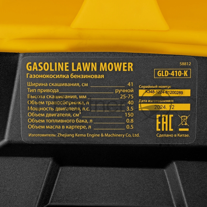 Газонокосилка бензиновая GLD-410-K, 150 см3, 41 см, 40 л Denzel