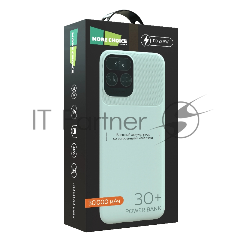 Мобильный аккумулятор More choice (4620202550644) PB55-30 с кабелем 1USB 3.0A 22.5W PD - 30000mAh белый