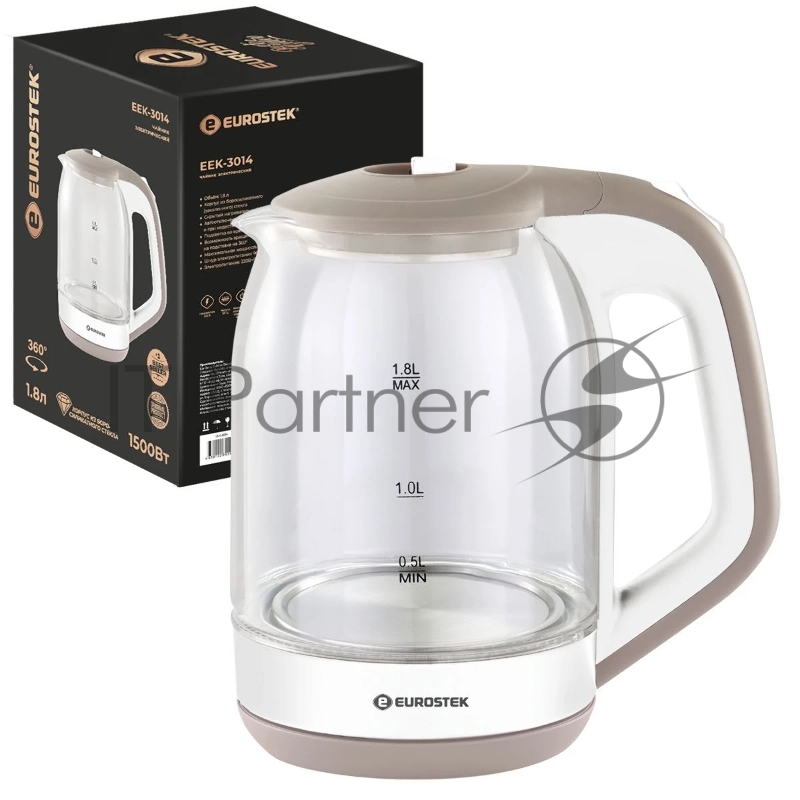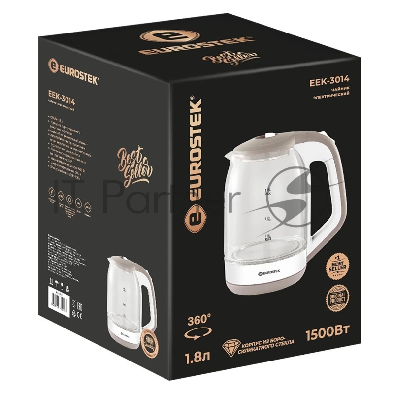 Чайник EUROSTEK ЕЕК-3014 белый, 1.8л, 1,5кВт, стекло