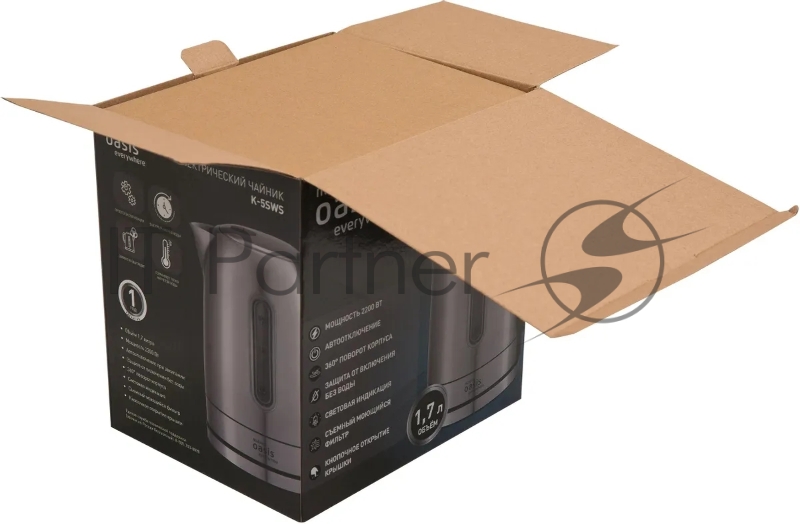 Чайник электрический OASIS K-5SWS стальной+черный 1,7л 2200Вт