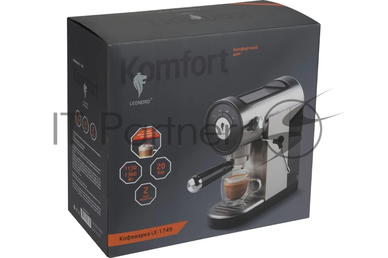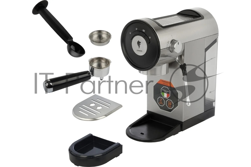 Кофеварка рожковая LEONORD LE-1749 (108134) черный/стальной, исп. кофе - молотый, 0,8 л, 1360 Вт, 20 бар