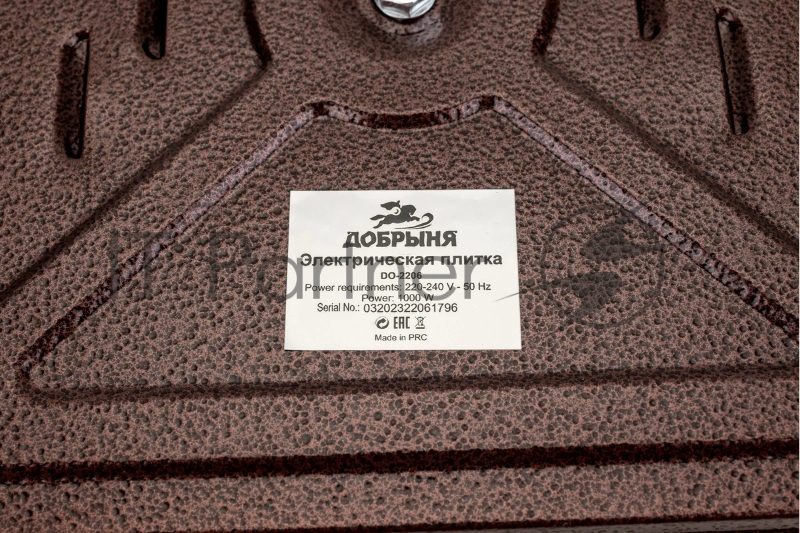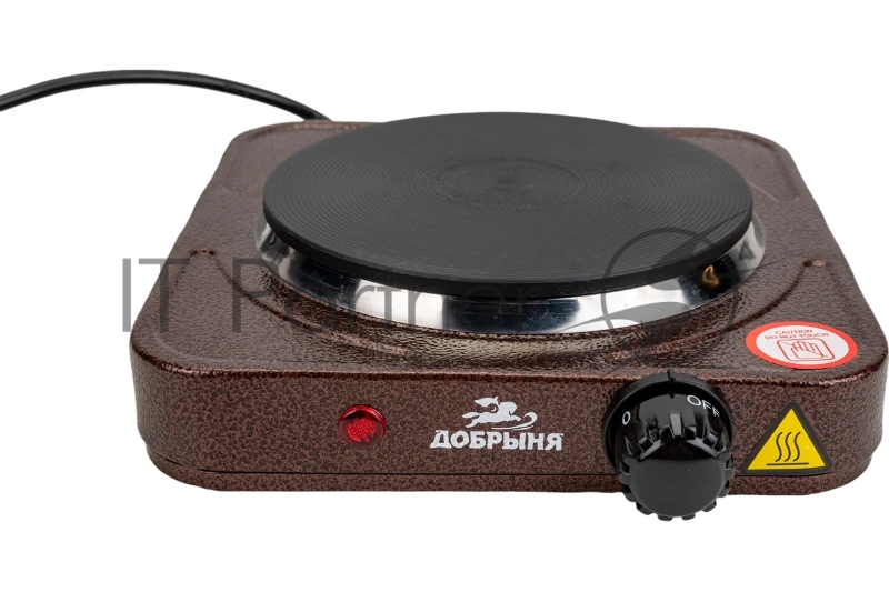 Плитка эл.(1 конф) Добрыня DO-2206 корич.(1000Вт) блин x12 Мощность: 1000 ВтНапряжение 220 В, 50 Гц5 режимов нагреваДиаметр конфорки: 15 смЗащита от перегреваСветовой индикатор работыРезиновые ножки