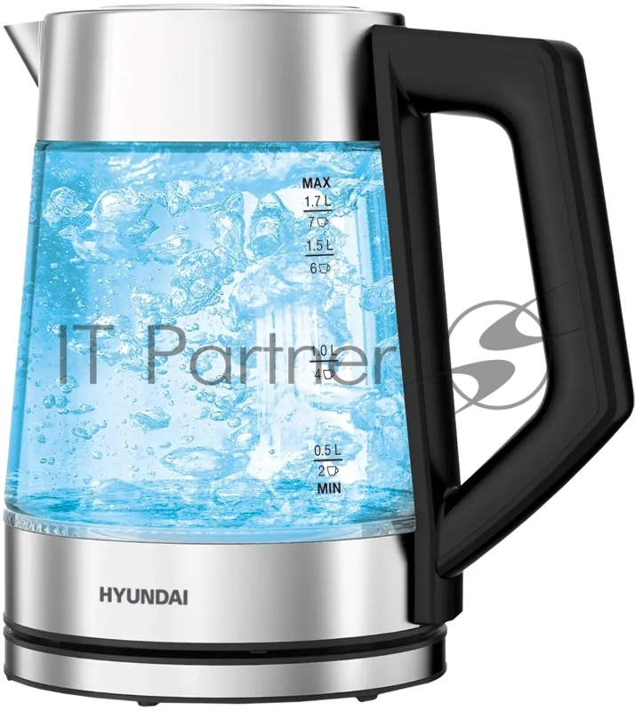 Чайник электрический Hyundai HYK-G4402 1.7л. 2200Вт черный/серебристый корпус: стекло